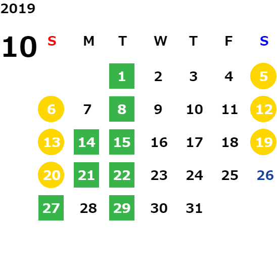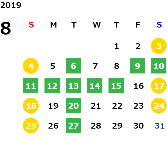 営業日カレンダー